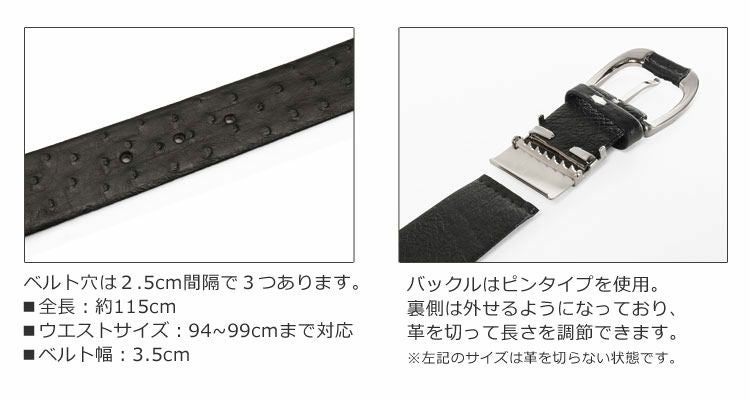 商品名:日本製 メンズ ベルト オーストリッチ 張り無双 ピンタイプ 幅35mm