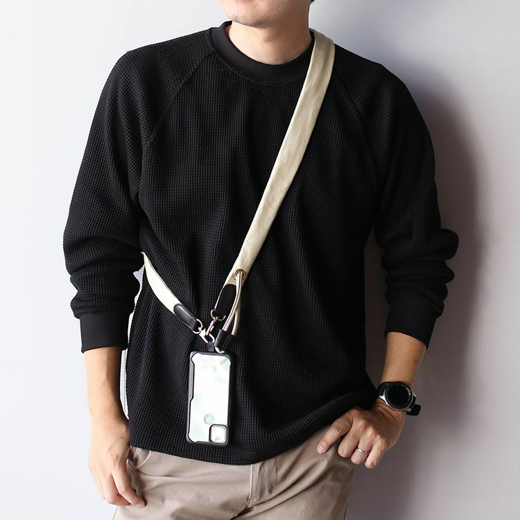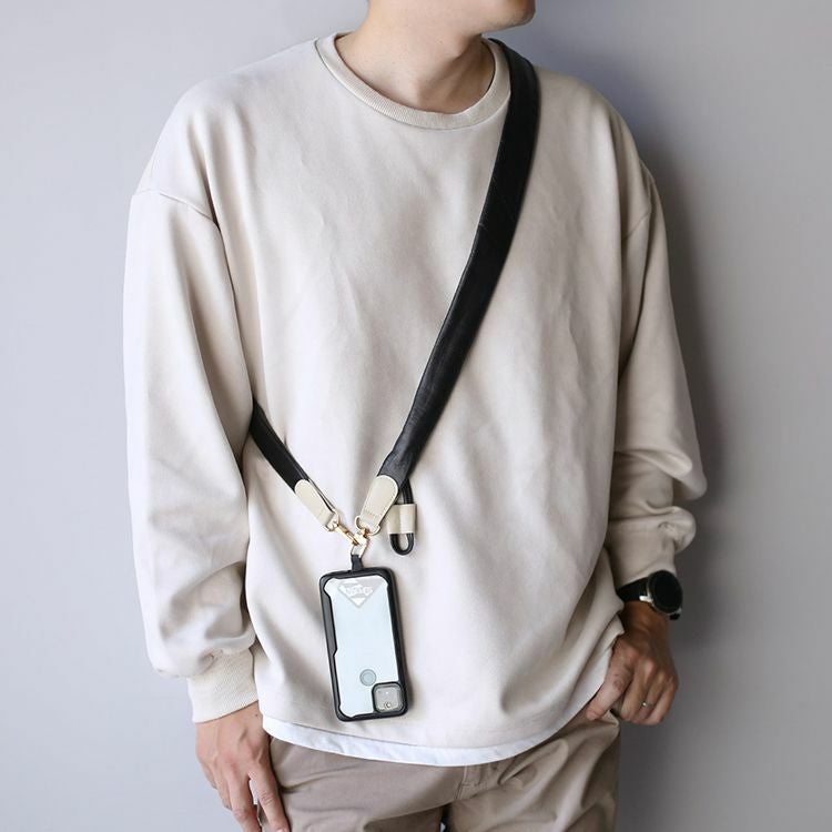 ※キーワード:スマホ用 スマートフォン用 ショルダーベルト 後付け 肩掛 斜め掛け 持ち歩き 携帯 おしゃれ レザー バイカラー 男女兼用 ユニセックス ギャザーショルダーバッグ 携帯用