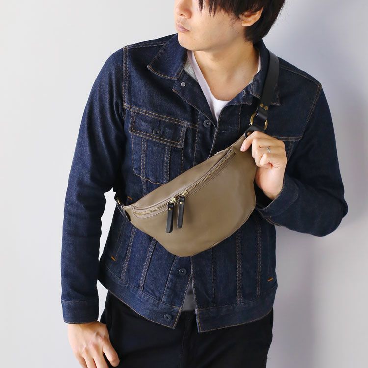 横型ボディバッグにサイドまで開閉し、掛けたまま取り出しやすいデザイン。