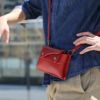 ショルダーウォレットのように肩から下げたままお金やスマホをパッ!と取り出せます。