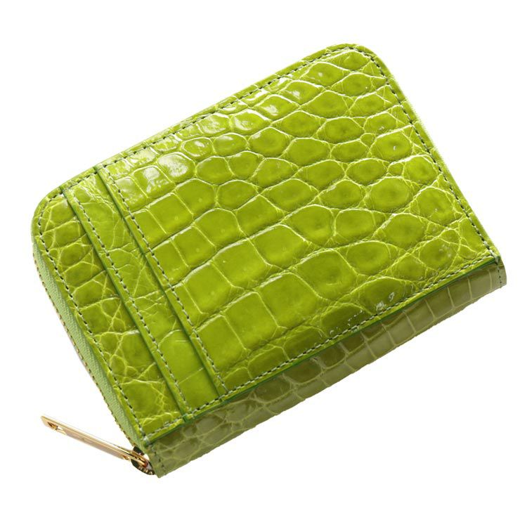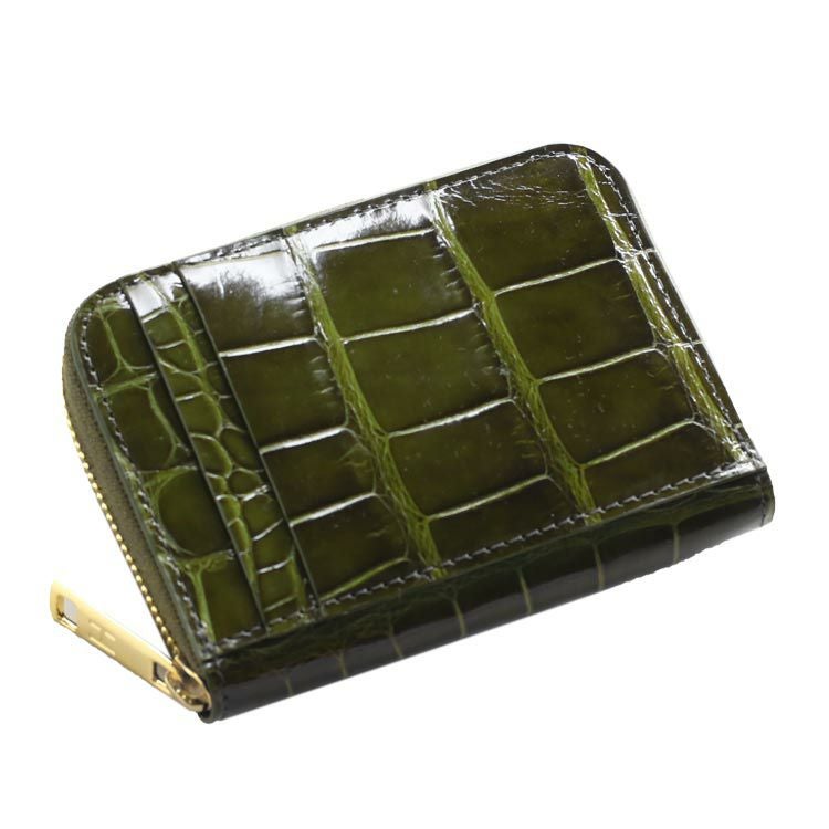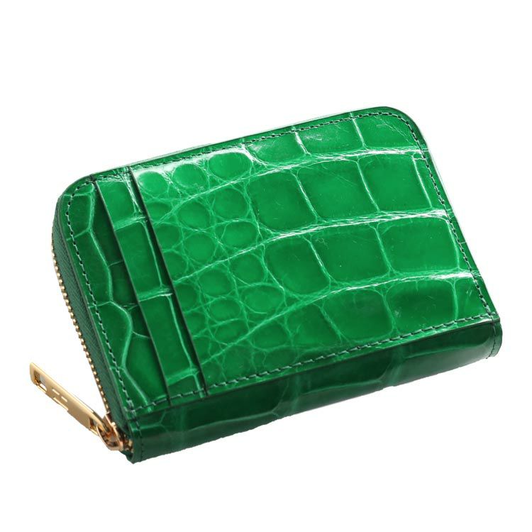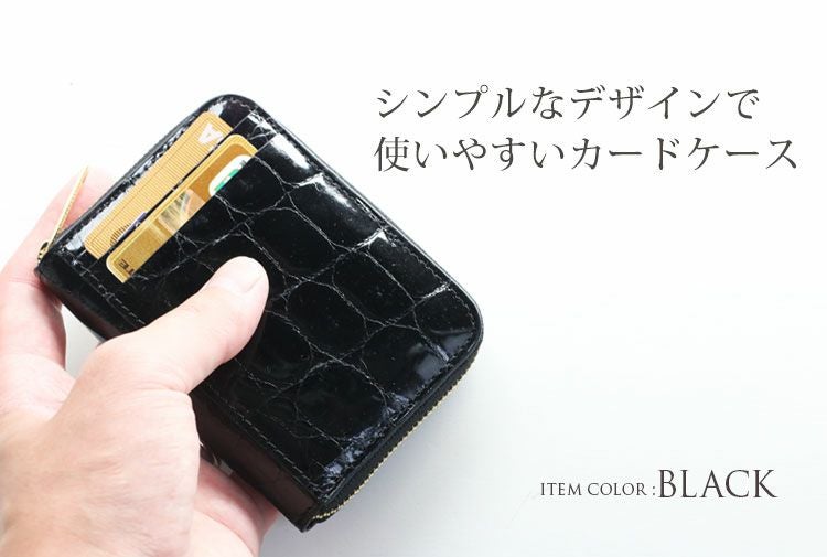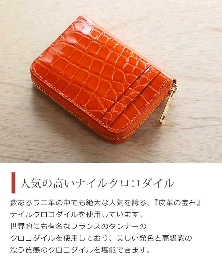 ナイルクロコダイルで仕立てたラウンドファスナー式のカードケース。