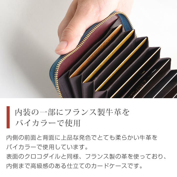 HALEINE クロコダイル カードケース 本革 メンズ じゃばら 本革 お財布 全14色 鰐革 ラウンドファスナー カード入れ プレゼント 父 ギフト