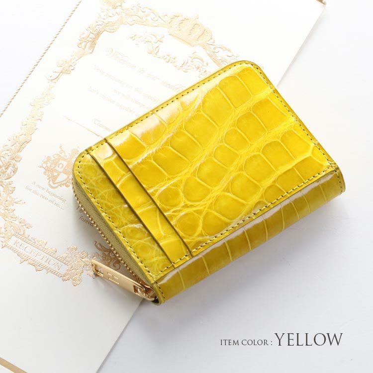 ナイルクロコダイル ファスナー カードケース アレンヌ イエロー 本革