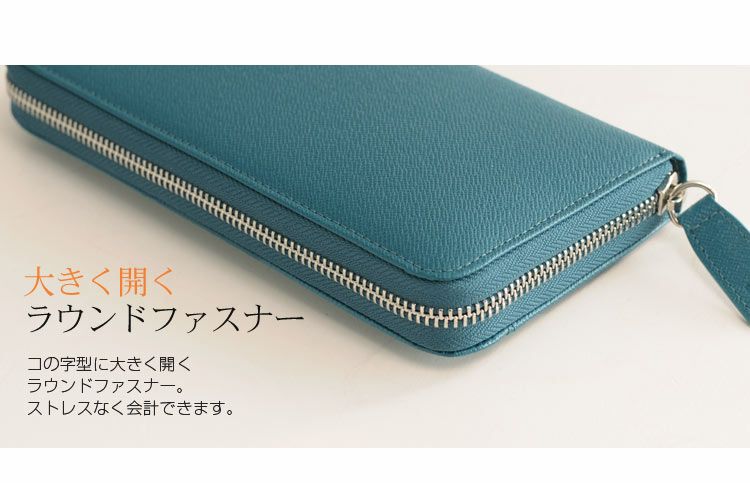 大きく開いて使いやすさ抜群のラウンドファスナー長財布です。