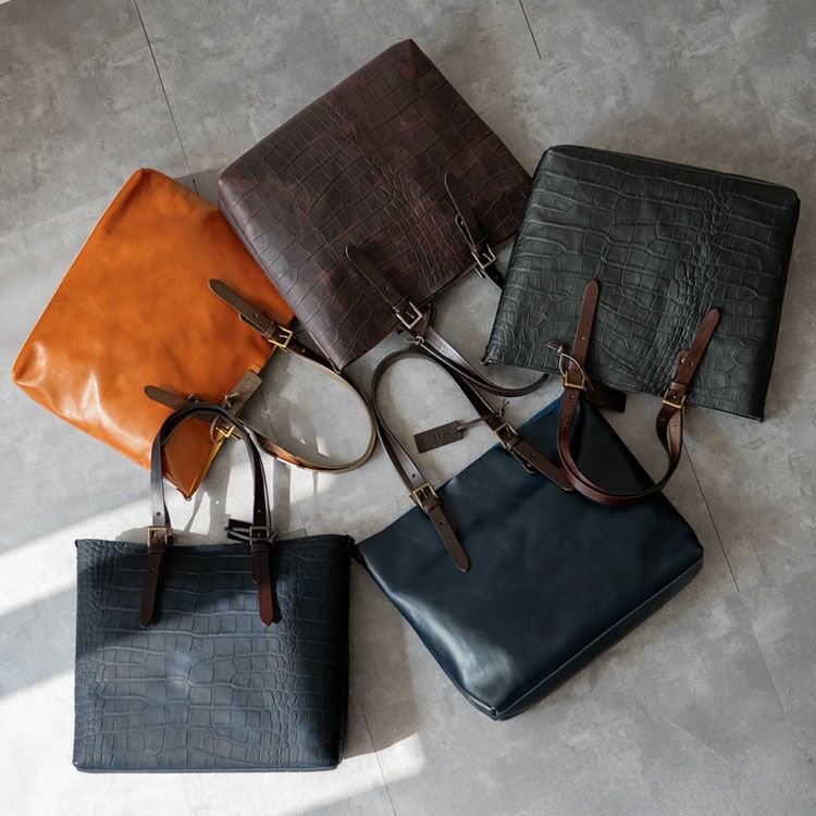 トートバッグ メンズ 大きめ a4 本革 日本製 牛革 HALEINE バッグ ヌメ革 切りっぱなし たつの レザー カジュアル クロコダイル型押し 全11色 【名入れ 可能】 通勤バッグ 記念品 シンプル プレゼント