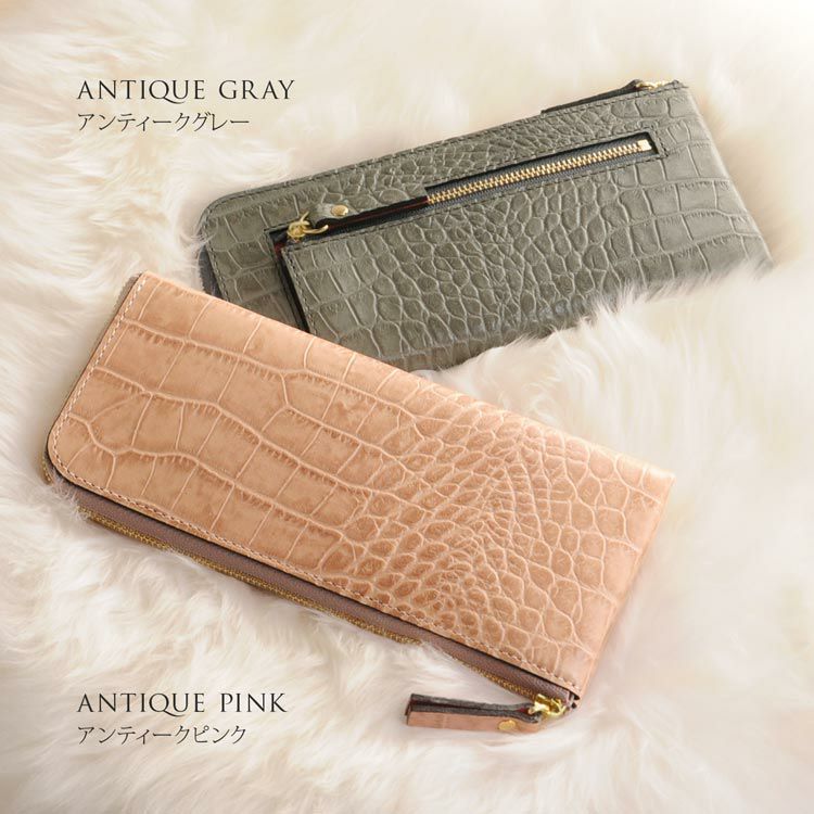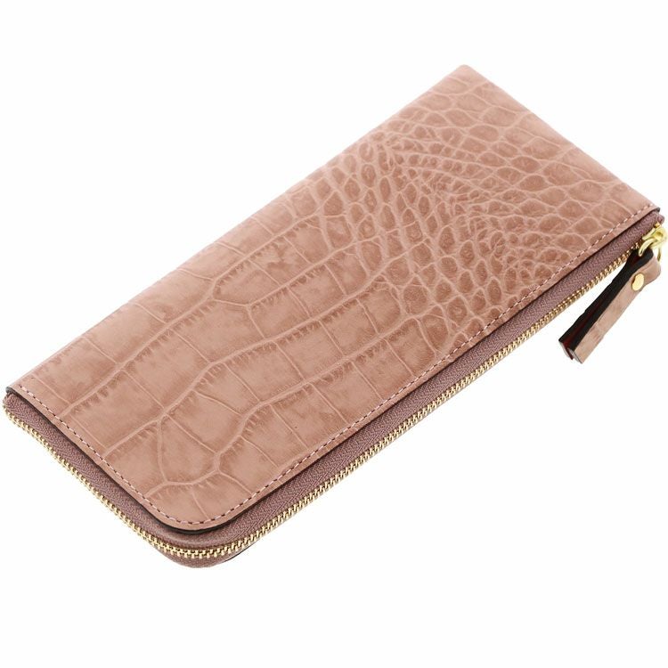 牛革 薄型長財布 クロコダイル 型押し HALEINE L字ファスナー レディース 全4色 スリム スマート 本革 レザー クロコ型押し プレゼント ギフト 長財布 薄型 ギフト
