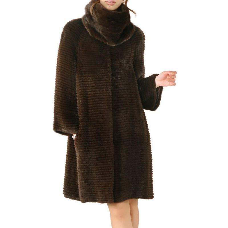 ミンク コート ノーカラー テープ使い スヌード付き ブラウン / レディース (No.01000232brn) |