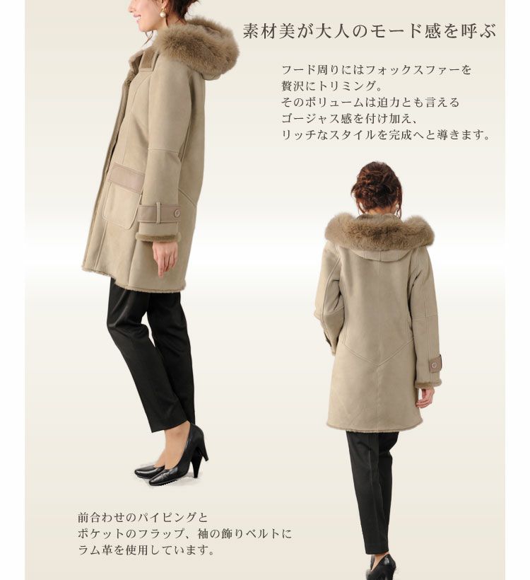 | 商品名:ムートン コート Wフェイス フード付き フォックス ファー トリミング / レディース (No.01000427) |