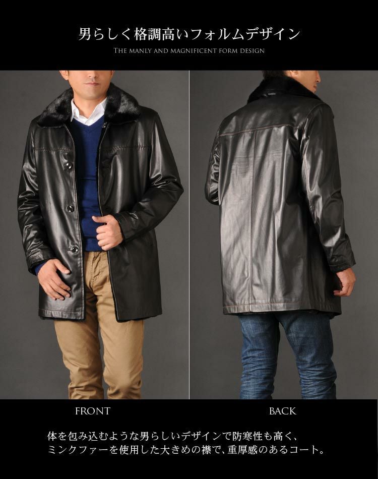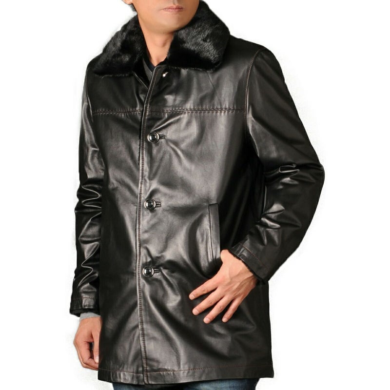 レザーコート メンズ ラム レザー コート ファーライナー付き ウィーゼル リバーシブルコート ジャケット アウター 秋 冬 男性 本革 革 羊革 革ジャン 紳士 誕生日 プレゼント ギフト