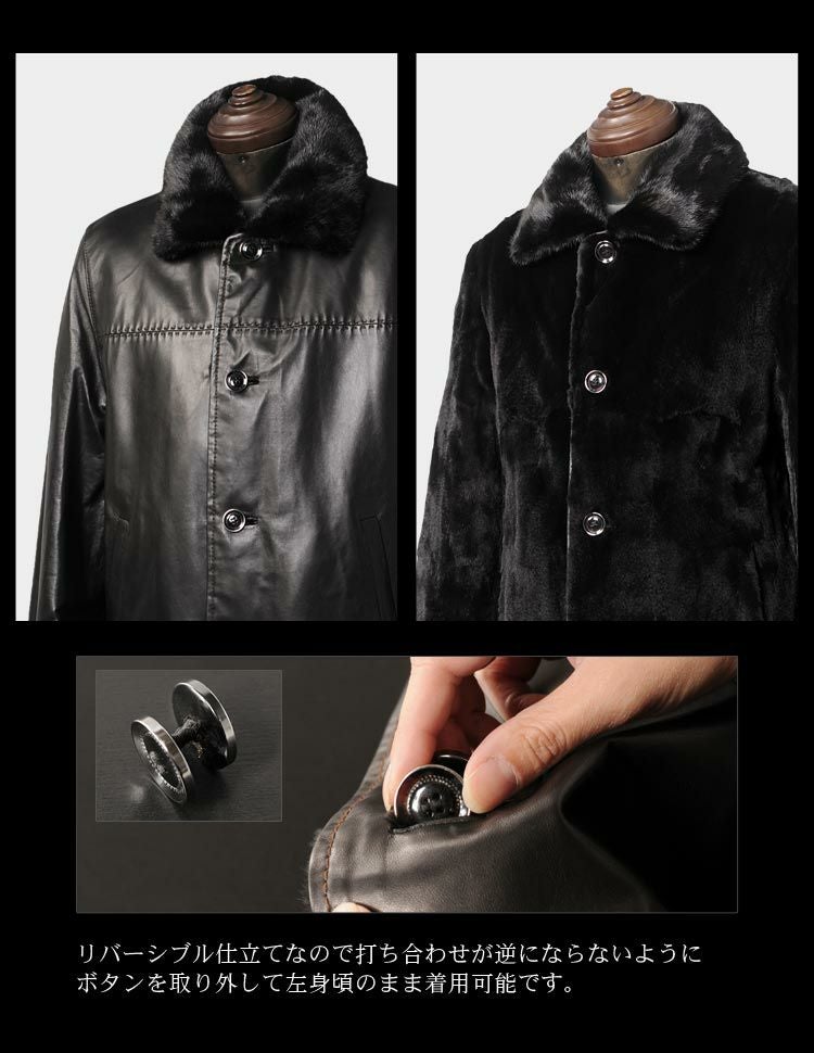 ラム革&ウィーゼルのリバーシブルデザインのコート。
