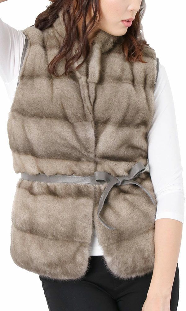 | 商品名:ミンク ラム革 カシミヤ ニット リバーシブル ベスト レディース |