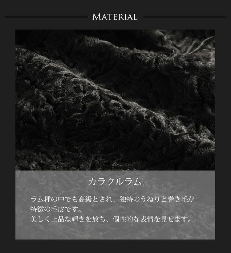 ラム種の中でも高級とされ、独特のうねりと巻き毛が特徴の毛皮カラクルラムを使用。