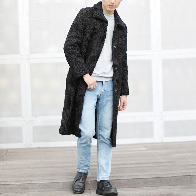 ファー コート メンズ カラクル ラム ロング 100cm 男女兼用 アウター 7F