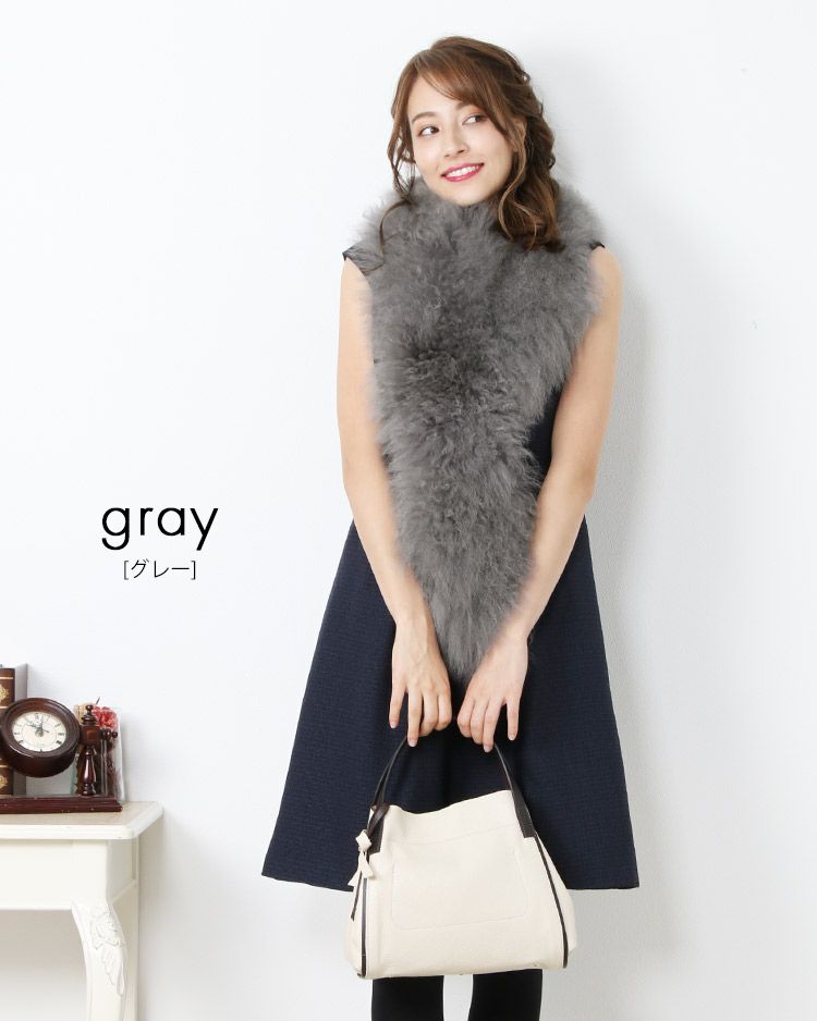 ラム ファー マフラー レディース 毛皮 ベージュ/グレー/ダークブラウン/ブラック 7F