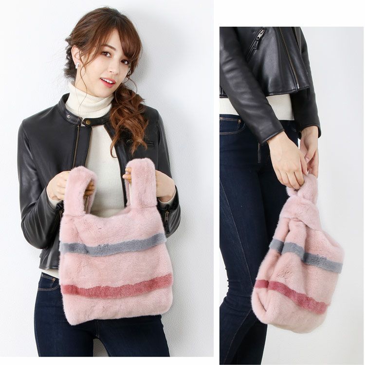 ファーバッグ レディース ミンク ショッパー バッグ ファー リアルファー 毛皮 本物 コペンハーゲン 秋冬 ふわふわ トートバッグ バイカラー プレゼント ギフト