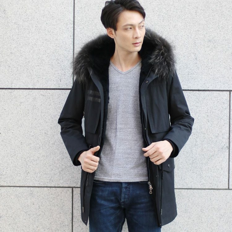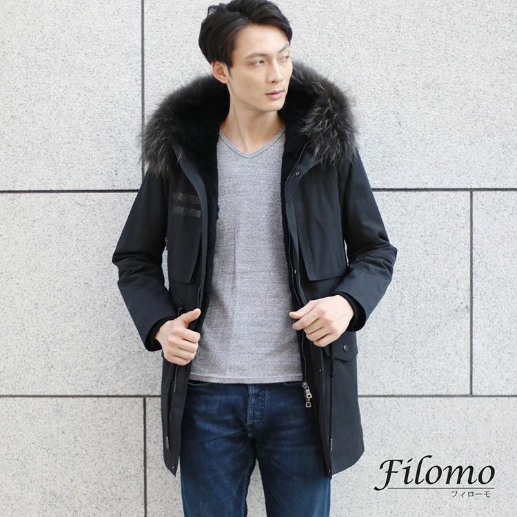 Filomo モッズコート ラクーンファーフード付き ラビットライナー付き メンズ 7F
