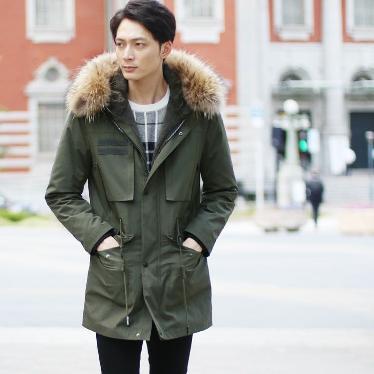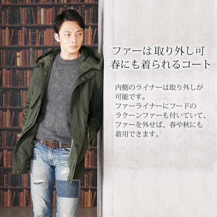モッズ コート メンズ カーキ ラクーン ファー