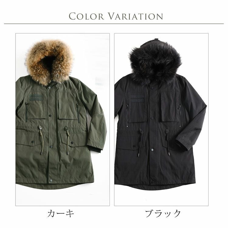 商品名:モッズコート フード付き ラクーン トリミング ファーライナー メンズ カーキ/ブラック