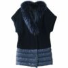 ムートン ダブルフェイス 7分袖 コート 袖ダウン 襟チャイニーズラクーン レディース ネイビー/ブラック (01000910r) 7F