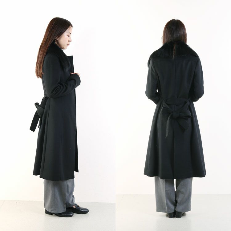 カシミヤ 100% ダブル ロング コート ブルーフォックスファー 内モンゴル産 比翼仕立て 着丈100cm レディース 秋 冬 ブラック 30代 40代 50代 ギフト プレゼント 母の日 ははの日 まだ間に合う実用的 6F (02000122r)