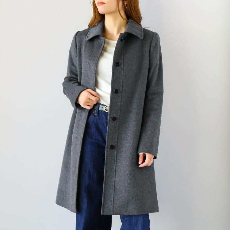 ベーシックなデザインで使いやすい、カシミヤ100%のステンカラーコート。