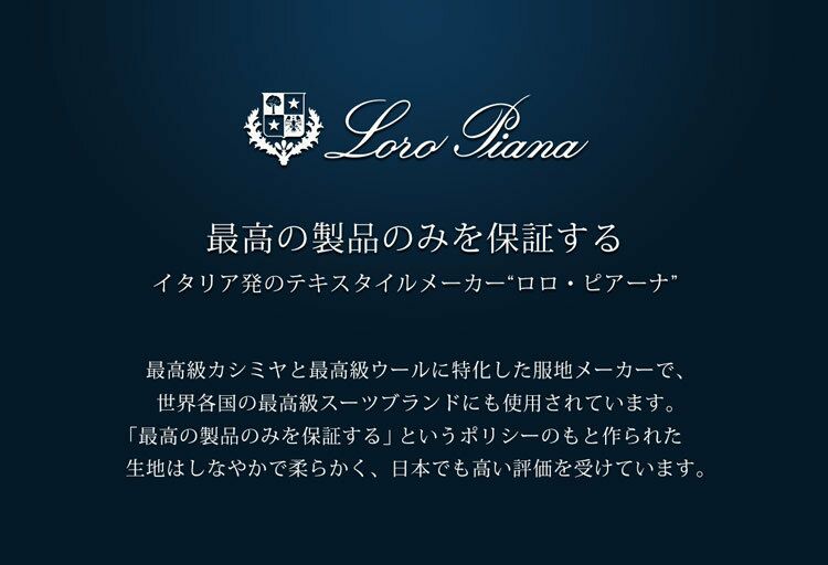 イタリア発のテキスタイルメーカー“ロロ・ピアーナ”の生地を使用しています。