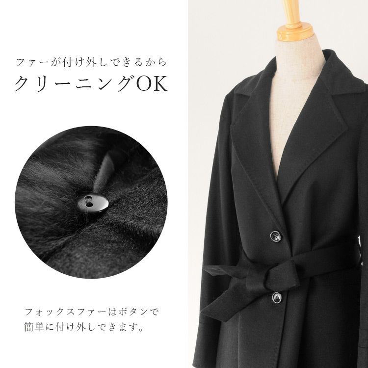 | 商品名:ERA/エラ カシミヤ 100% コート フォックス 襟 コート 着丈90cm レディース 冬 ライトベージュ/オレンジ/ブラック |