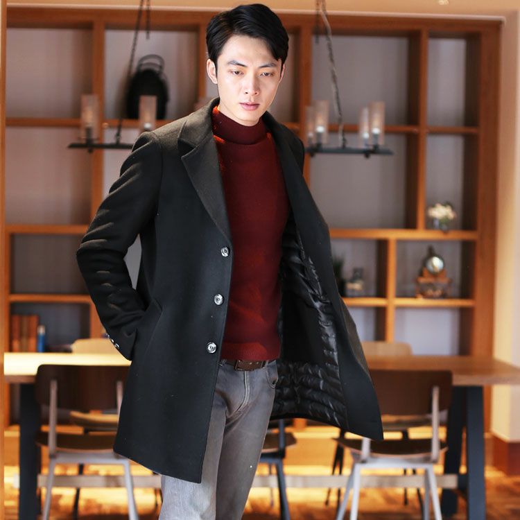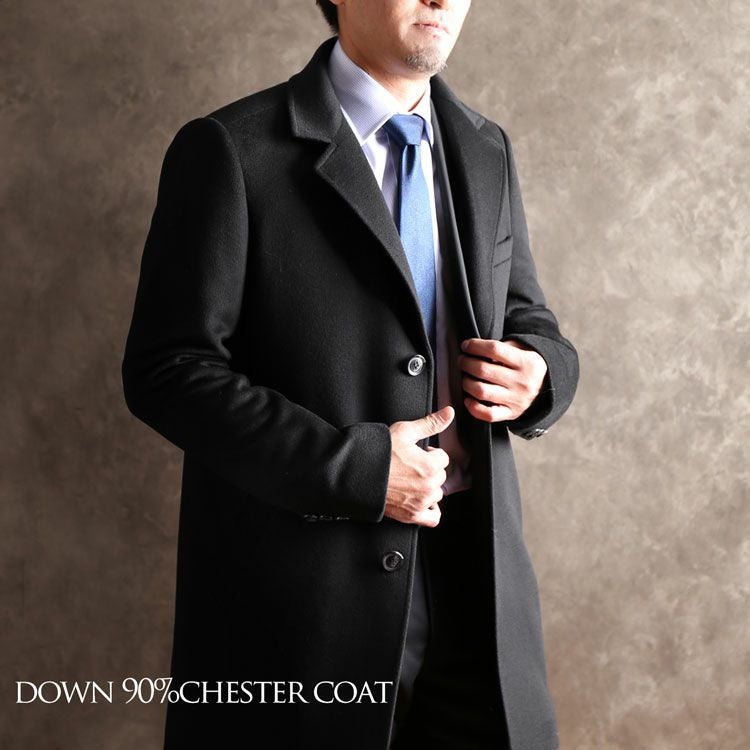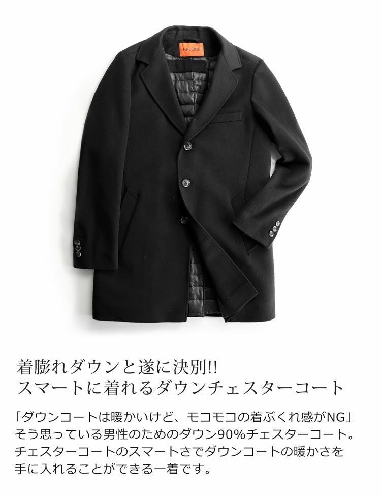 メンズ チェスターコート メンズ ダウン ライナー カシミヤブレンド ウール アウター ミドル 秋 冬 M/L/LL ダウン90% ブランド 極暖 大きいサイズ プレゼント ギフト