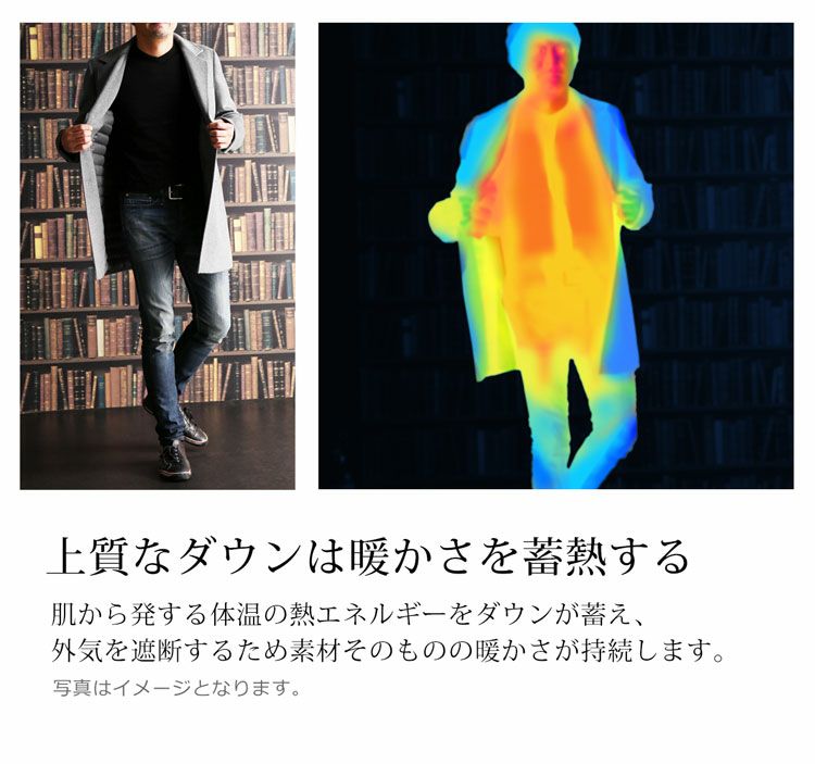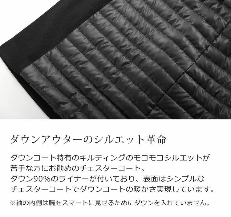 チェスターコートとインナーダウンが一つになったダウンコートの革命的な一着です。