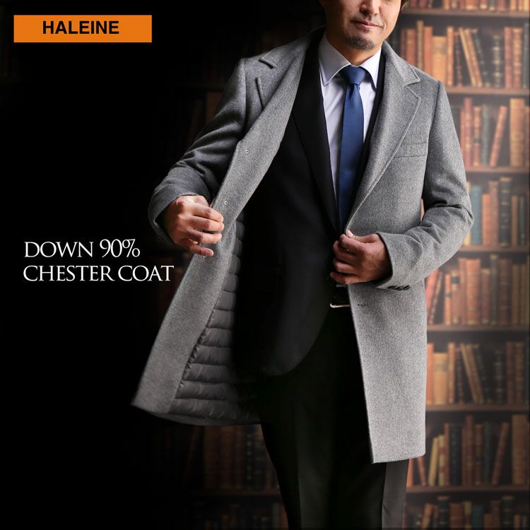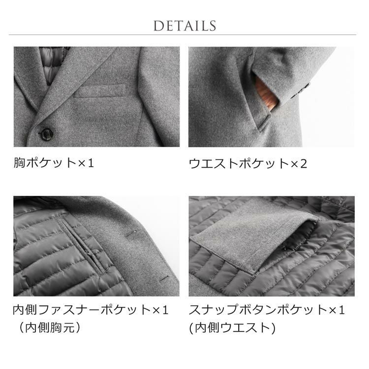 | 商品名:HALEINE メンズ チェスターコート ダウン ライナー カシミヤブレンド ウール アウター ミドル 秋/冬/春 グレー/ブラック M/L/LL |