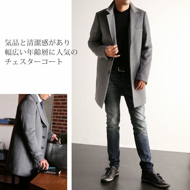 気品と清潔感があり、幅広い年齢層に人気のあるチェスターコート。