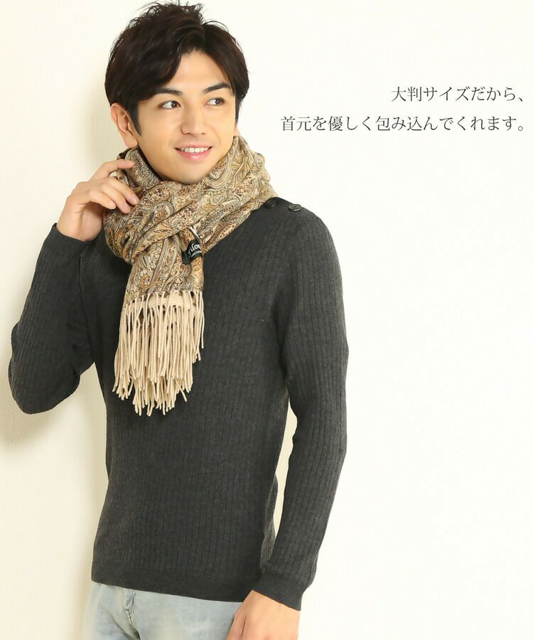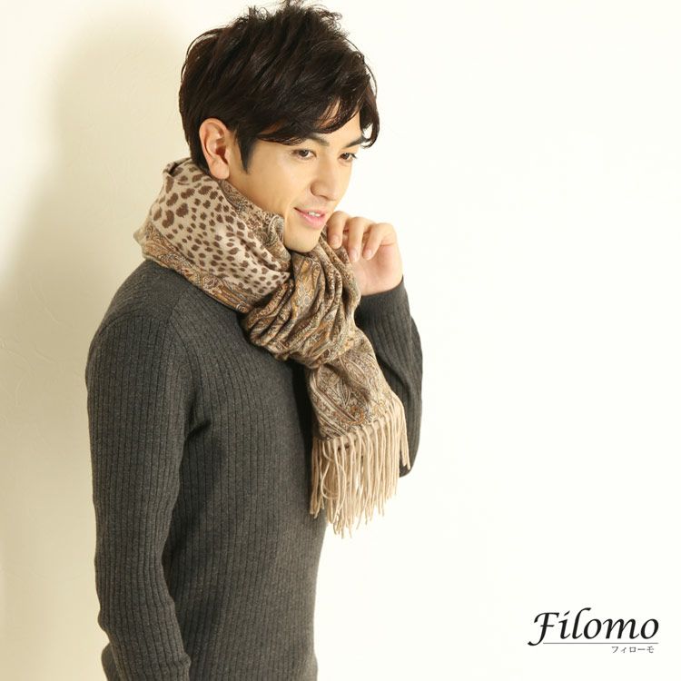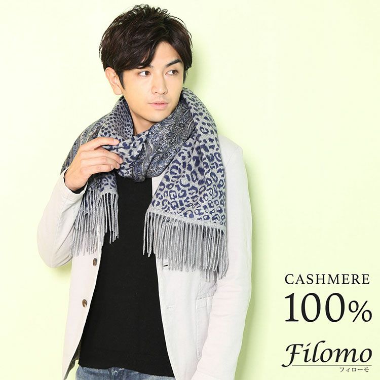 | 商品名:Filomo カシミヤ 100% ペイズリー × レオパード柄 リバーシブル 大判 ストール メンズ |