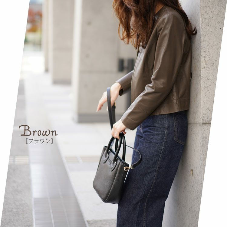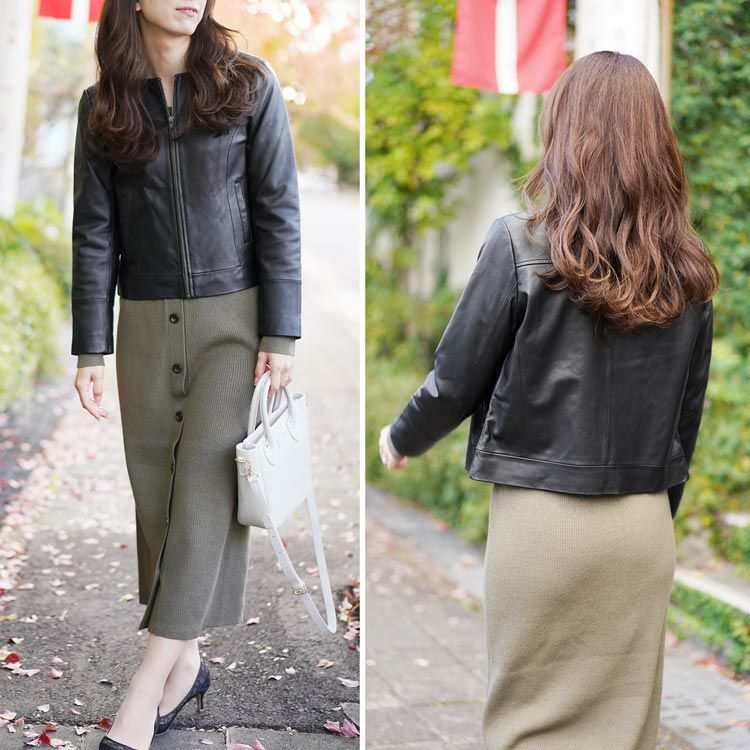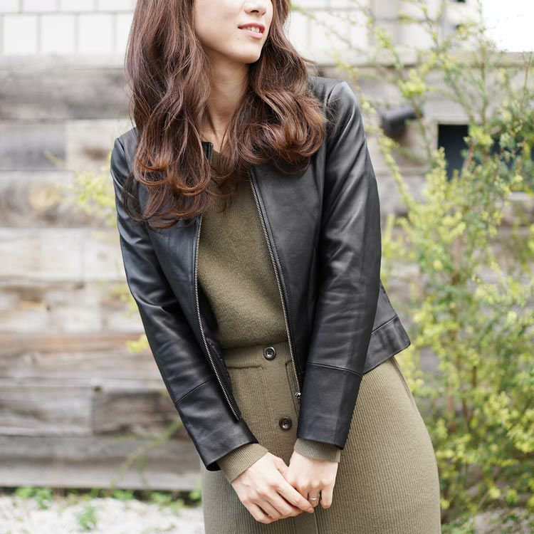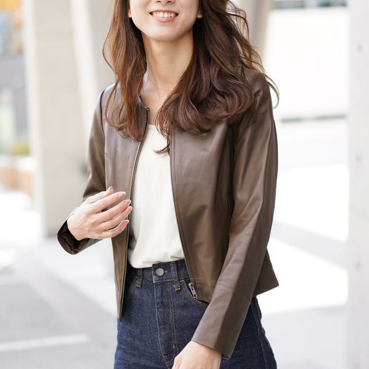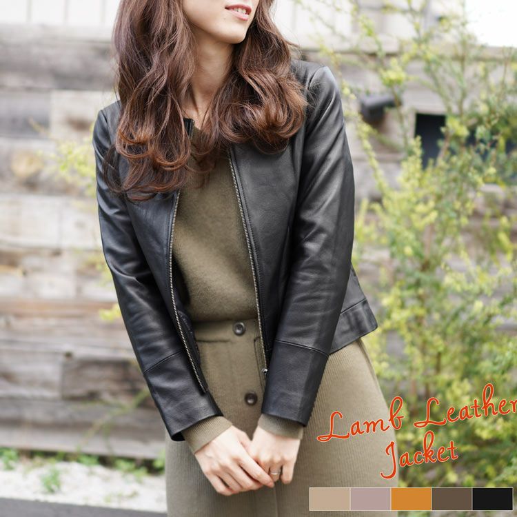 商品名:ラム レザー ノーカラー ジャケット レディース