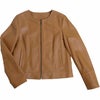 2. レザージャケット レディース ノーカラー 本革 ラム シンプル ショート丈 ライトアウター ブラック ブラウン ベージュ ピンク (04000100r) 7F