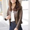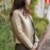 レザージャケット レディース ノーカラー 本革 ラム シンプル ショート丈 ライトアウター ブラック ブラウン ベージュ ピンク (04000100r) 7F
