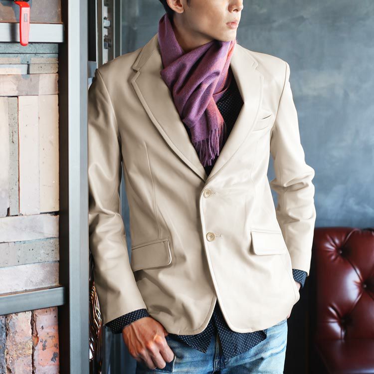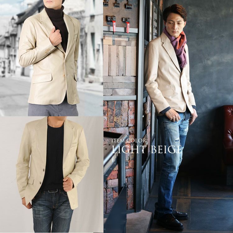 | 商品名:本革 メンズ レザー ジャケット ラム スキン テーラードジャケット M/L/XL ライトベージュ/ブラック |