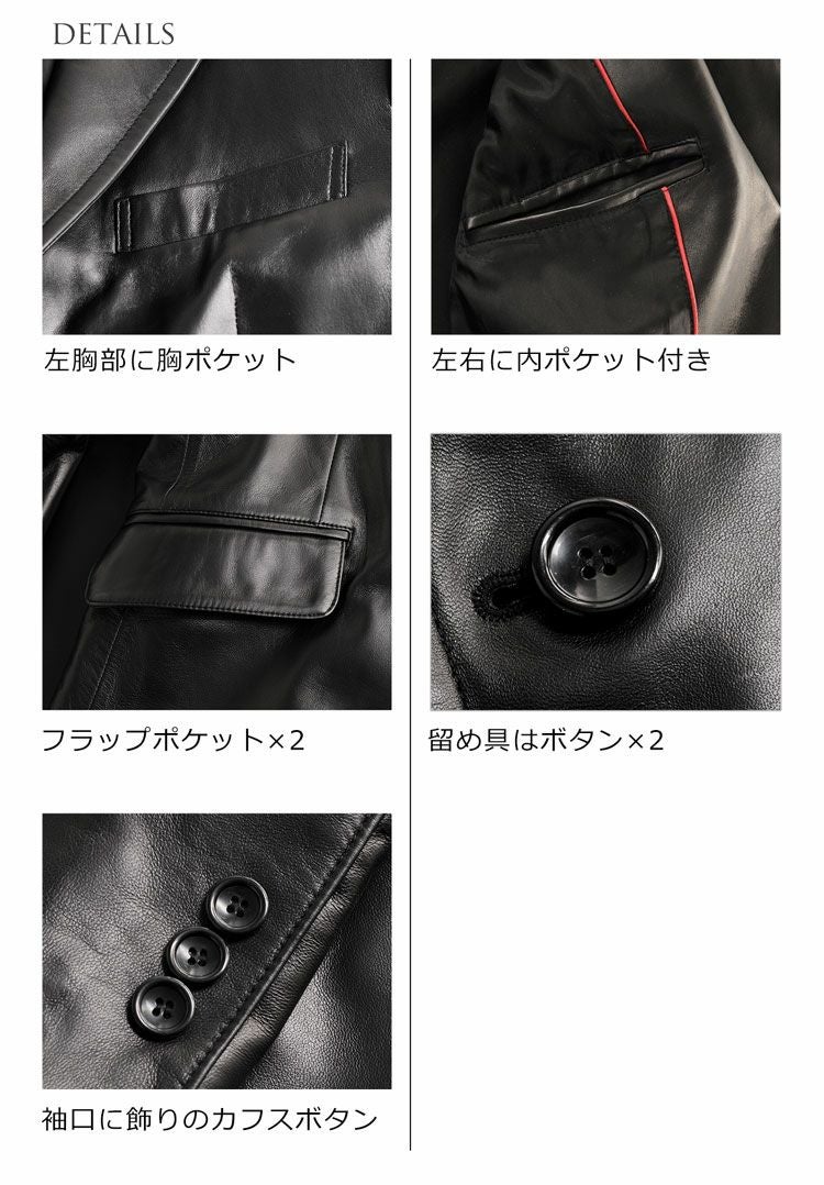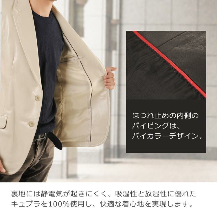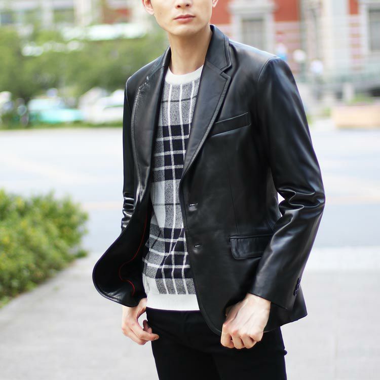 厳選されたラム革を使用、定番スタイルのテーラードジャケット。