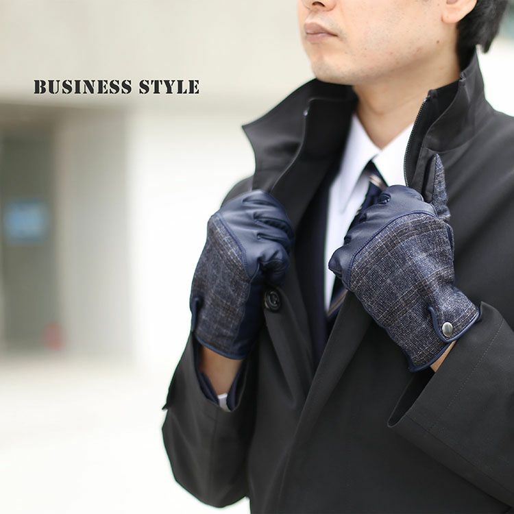 ラム革メンズ手袋 コンビネーション スマホ対応 グローブ