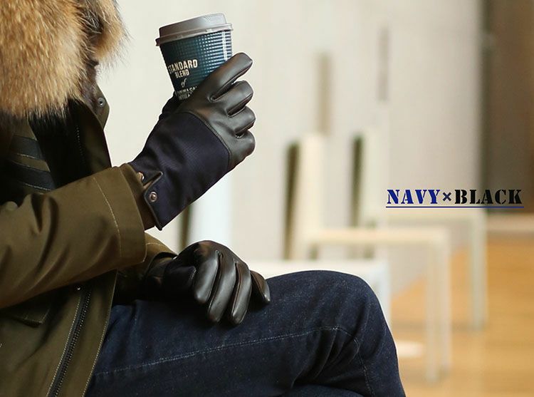 ※キーワード:手袋 メンズ 革 レザー グローブ 防寒 スマホ タブレット 対応 本革 羊革 秋 冬 男性 かっこいい 暖かい レザー手袋 革手袋 コンビネーション