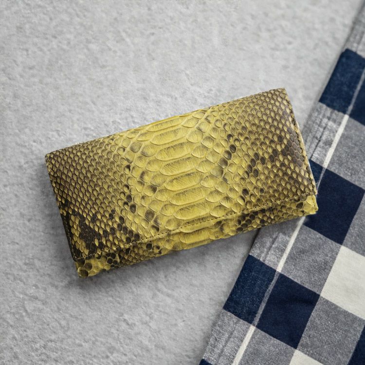 天然皮革 エキゾチックレザー パイソン 長財布 レディース 本革 フラップ 婦人財布 財布 パイソン柄 ダイヤモンドパイソン 蛇革 軽量 機能的 使いやすい 女性 プレゼント 金運 黄色 ヘビ 革 風水 蛇柄 かぶせ ギフト 花以外 実用的 ギフト
