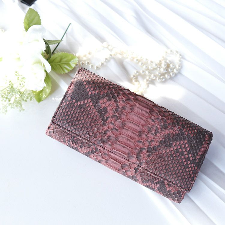 パイソン柄だと厳ついイメージなので、私が使うためにピンクを選びました。優しい薄ピンクで思った通りの雰囲気でした。使いこなしているうちに、多少鱗のめくれが気になったので、気になる部分だけ薄くボンドで貼り付けました。使い易く良いお財布です?本革だし、長く愛用して行きたいです。