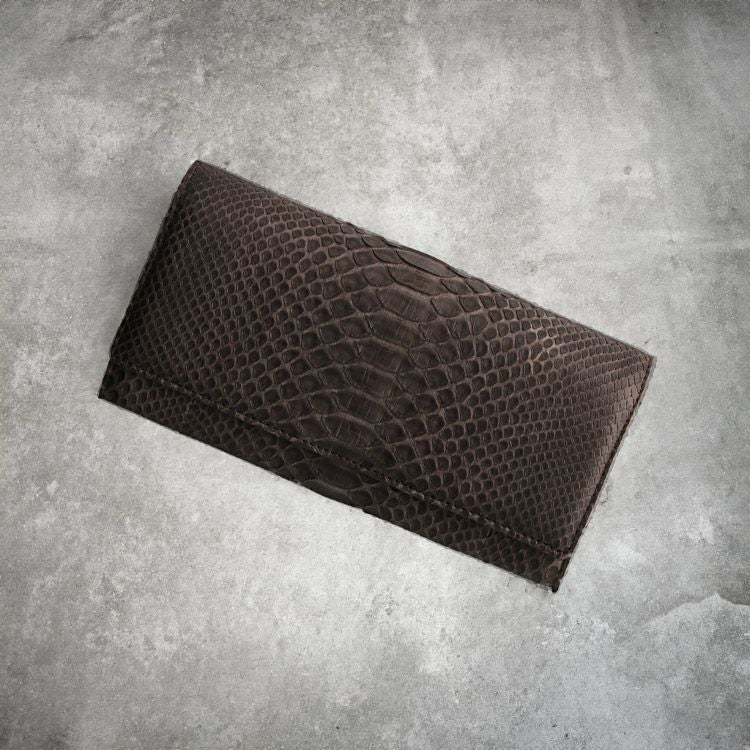 パイソン かぶせ 長財布 ワイン ブラウン