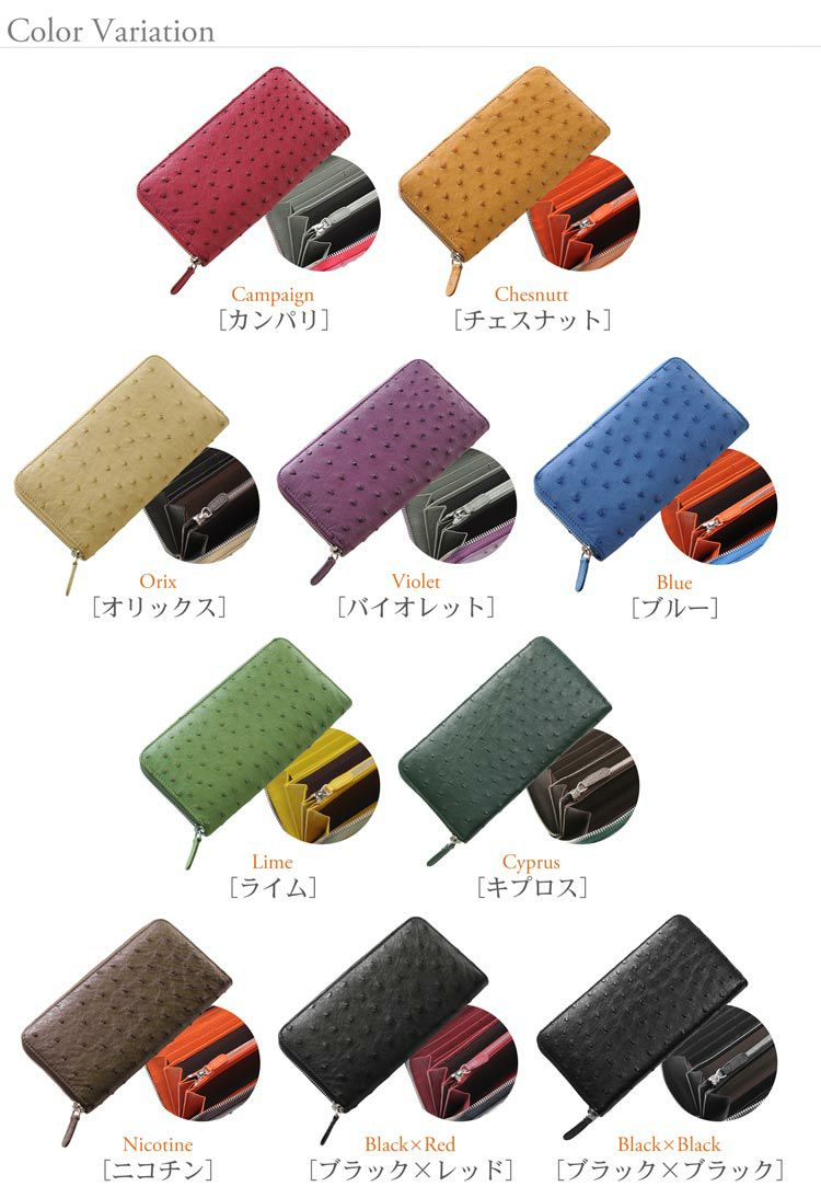HALEINE オーストリッチ メンズ 長財布 ラウンドファスナー フルポイント 財布 革 本革 バイオレット/ブルー/ライム/ニコチン/ブラック プレゼント ギフト 普段使い ギフト