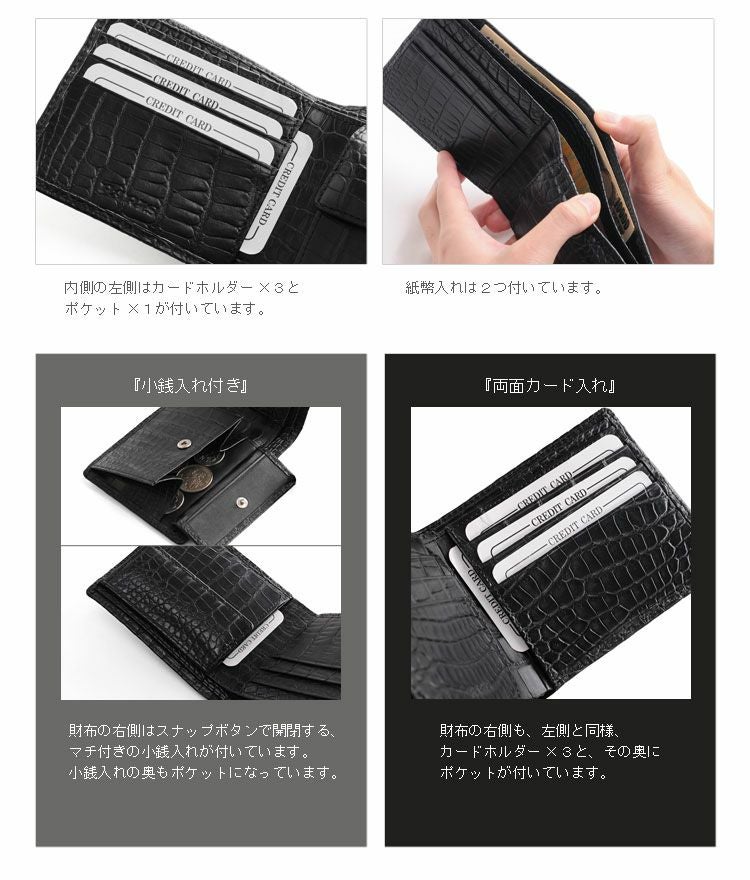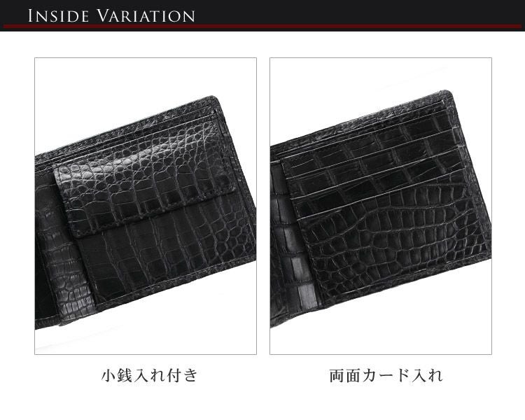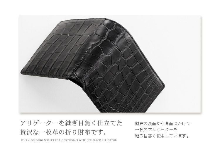 天然皮革 エキゾチックレザー 一枚革 アリゲーター 二つ折り財布 小銭入れ付き 小銭入れなし 無双仕立て マット加工 メンズ ブラック ワニ革 本革 レザー 革 メンズ財布 誕生日 父 プレゼント ギフト 父 小銭入れ無し ギフト