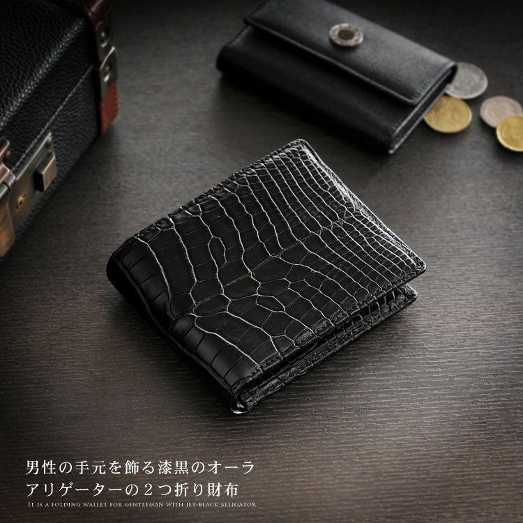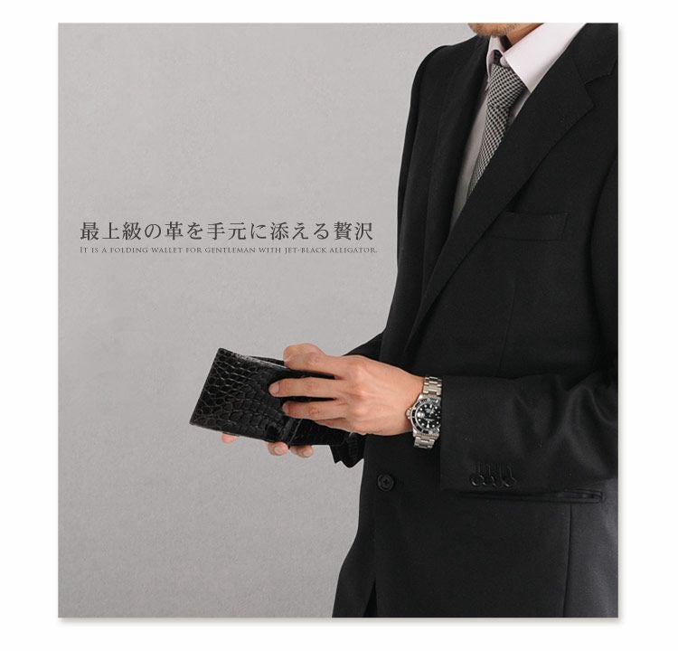 クラシカルなアイテムで世界中で愛用される上品なデザイン、アリゲーターの贅沢な無双仕様、メンズ二つ折り財布。