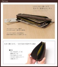 L字ファスナーで大きく開き見た目以上に収納力が豊富で使いやすい長財布です。