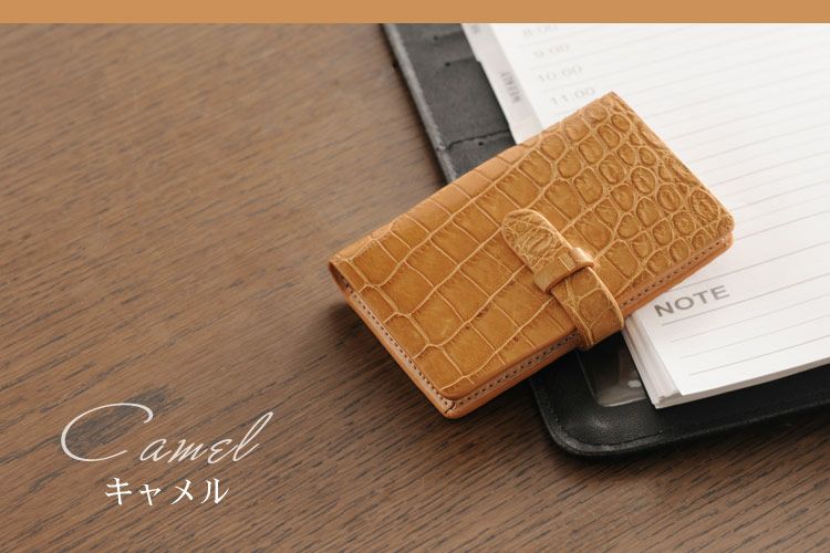 クロコダイルで仕立てたカラフルなカラーから選べる名刺入れです。