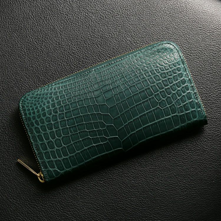 ナイルクロコダイルを使用したラウンドファスナー長財布です。