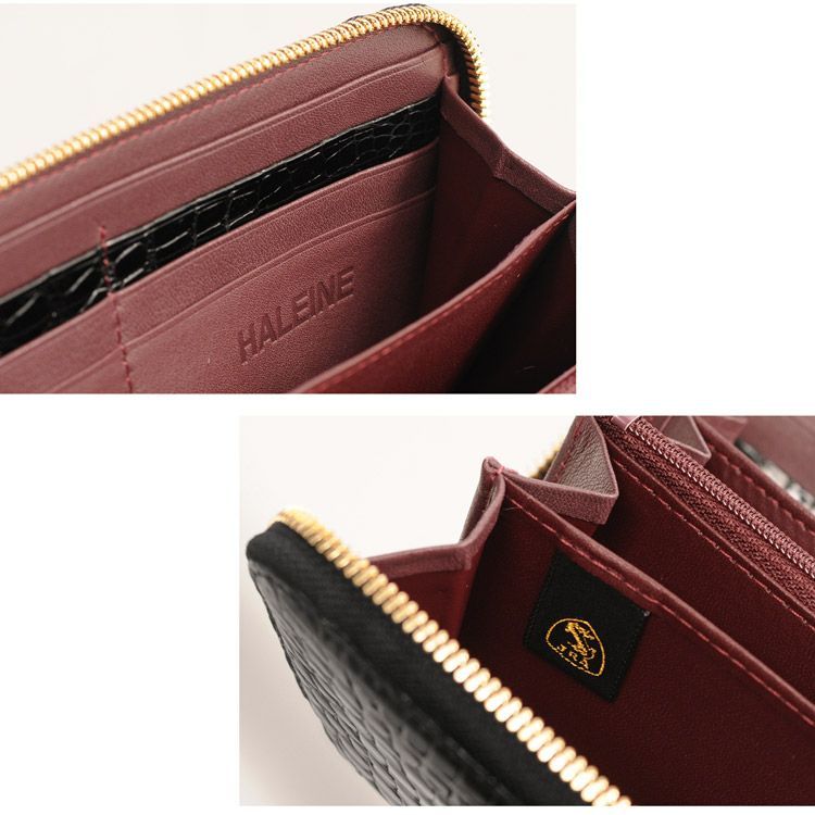 HALEINE クロコダイル 日本製 メンズ 長財布 ラウンドファスナー シャイニング マット 加工 一枚革 センター取り