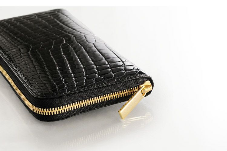 クロコダイルの高級感と相性のいいメタルファスナーを使用しています。
